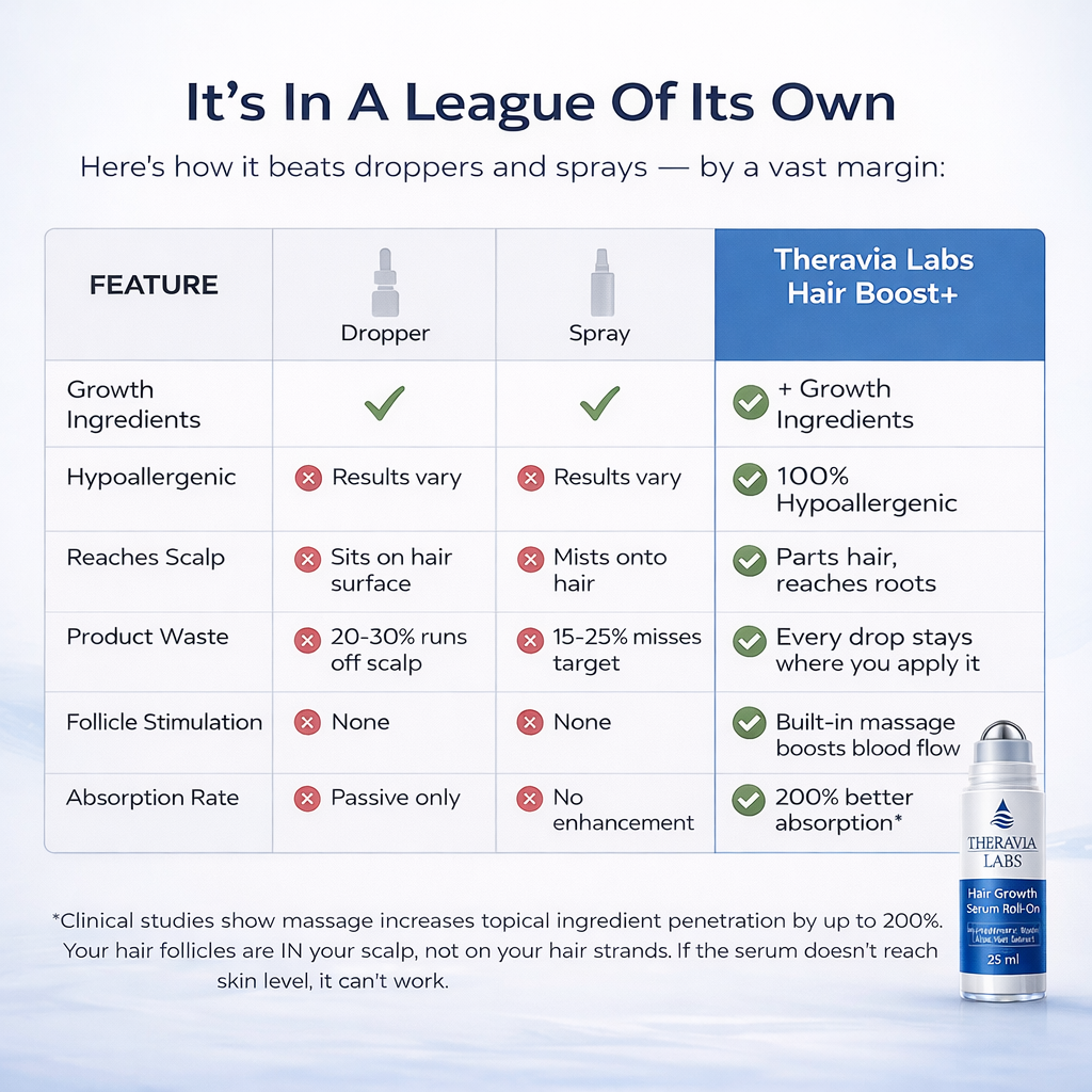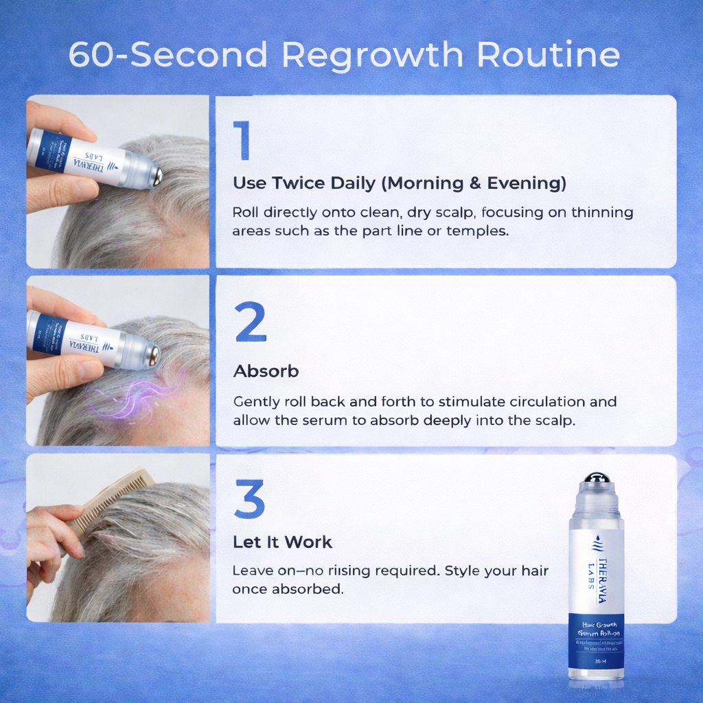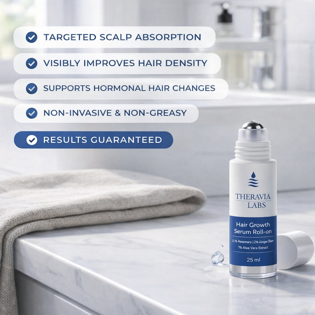 As a medical professional, I value treatments that focus on scalp health and consistent application. Theravia Labs Hair Serum Roll-On delivers active ingredients directly where they’re needed, helping strengthen follicles and support healthier hair growth over time.