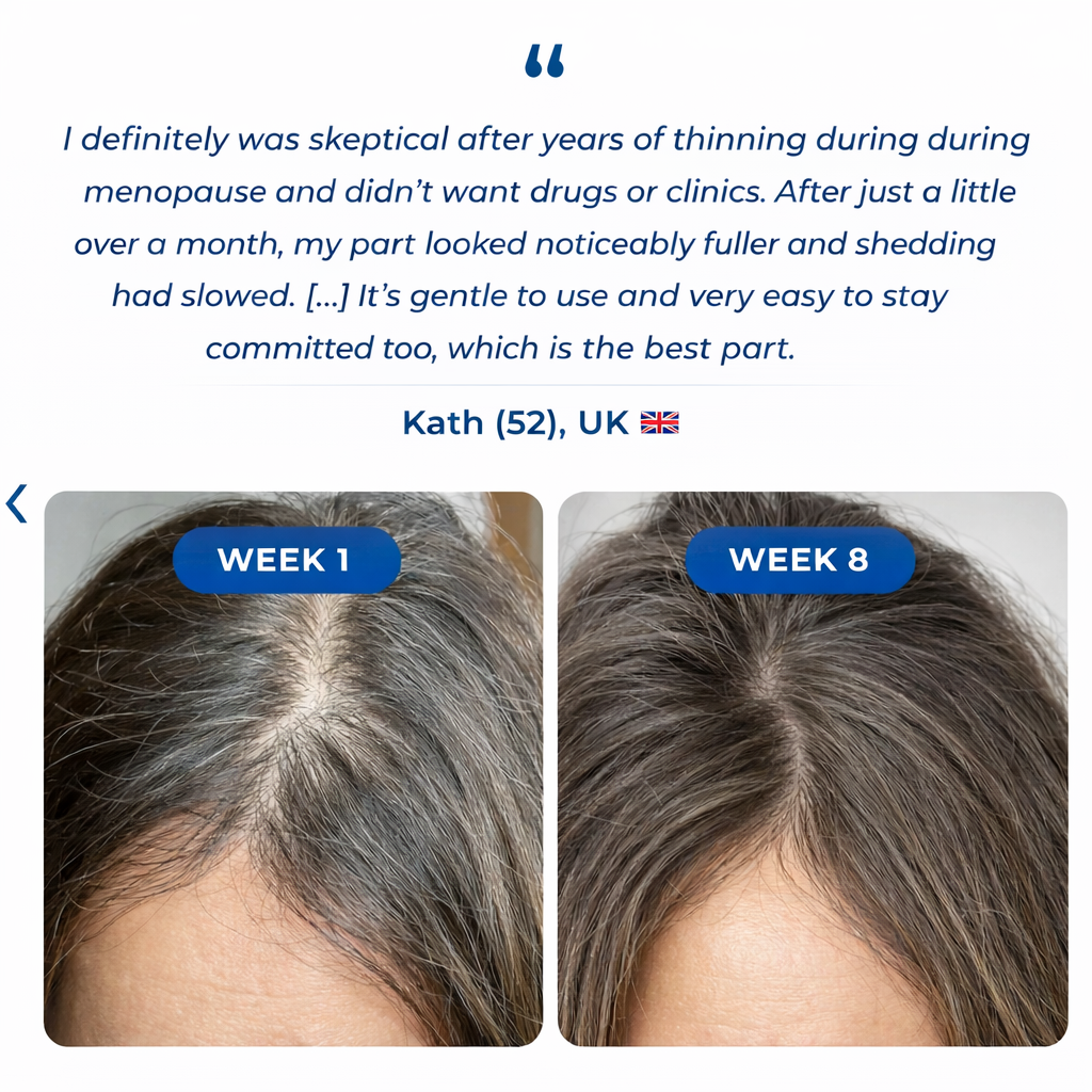By supporting follicle health and reducing scalp stress, your hair can grow fuller and stronger over time. With consistent use, you’ll notice improved density, reduced shedding, and visibly healthier hair long term.