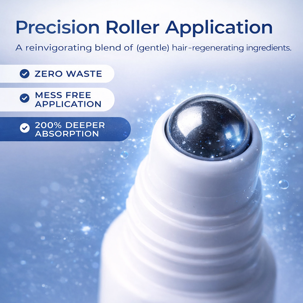 The precision roll-on applicator delivers the formula directly to the roots, maximizing absorption and stimulating circulation exactly where growth begins.